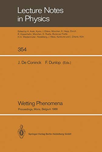 Wetting Phenomena [electronic resource] : Proceedings of a Workshop on Wetting Phenomena Held at the University of Mons, Belgium October 17–19, 1988 / edited by Joël Coninck, François Dunlop.