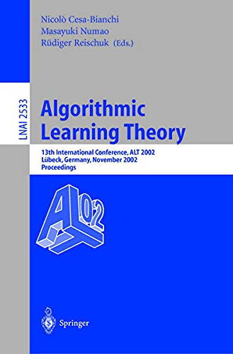 Algorithmic Learning Theory [electronic resource] : 13th International Conference, ALT 2002 Lübeck, Germany, November 24–26, 2002 Proceedings / edited by Nicolò Cesa-Bianchi, Masayuki Numao, Rüdiger Reischuk.