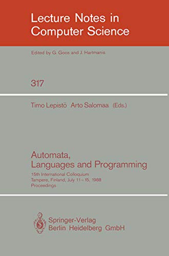 Automata, Languages and Programming [electronic resource] : 15th International Colloquium Tampere, Finland, July 11–15, 1988 Proceedings / edited by Timo Lepistö, Arto Salomaa.