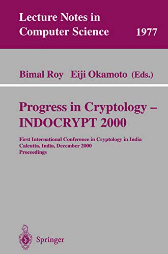 Progress in Cryptology —INDOCRYPT 2000 [electronic resource] : First International Conference in Cryptology in India Calcutta, India, December 10–13, 2000 Proceedings / edited by Bimal Roy, Eiji Okamoto.