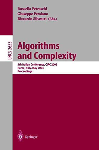 Algorithms and Complexity [electronic resource] : 5th Italian Conference, CIAC 2003, Rome, Italy, May 28–30, 2003. Proceedings / edited by Rossella Petreschi, Giuseppe Persiano, Riccardo Silvestri.