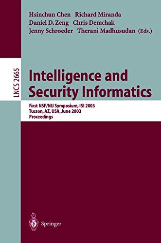 Intelligence and Security Informatics [electronic resource] : First NSF/NIJ Symposium, ISI 2003, Tucson, AZ, USA, June 2–3, 2003 Proceedings / edited by Hsinchun Chen, Richard Miranda, Daniel D. Zeng, Chris Demchak, Jenny Schroeder, Therani Madhusudan.