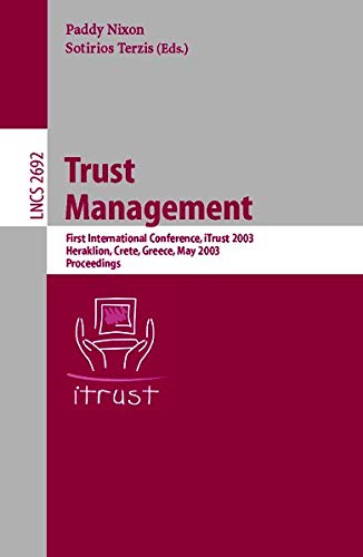 Architecture and Algorithms for a Distributed Reputation System -- Regularity-Based Trust in Cyberspace -- A Trust Matrix Model for Electronic Commerce -- Hardware Security Appliances for Trust -- Managing Trust and Reputation in the XenoServer Open Platform -- Trust-Based Protection of Software Component Users and Designers -- Trust Management Tools for Internet Applications -- Trust-Based Filtering for Augmented Reality -- Towards the Intimate Trust Advisor -- Trusting Collaboration in Global Computing Systems -- Trust, Reliance, Good Faith, and the Law -- Social Capital, Community Trust, and E-government Services -- Simulating the Effect of Reputation Systems on E-markets -- Integrating Trustfulness and Decision Using Fuzzy Cognitive Maps -- Methodology to Bridge Different Domains of Trust in Mobile Communications -- A Subjective Approach to Routing in P2P and Ad Hoc Networks -- Trust Propagation in Small Worlds -- Enforcing Collaboration in Peer-to-Peer Routing Services -- Statistical Trustability (Conceptual Work) -- An Introduction to Trust Negotiation -- Experience with the KeyNote Trust Management System: Applications and Future Directions -- Fidelis: A Policy-Driven Trust Management Framework -- Implementation of an Agent-Oriented Trust Management Infrastructure Based on a Hybrid PKI Model -- Authenticated Dictionaries for Fresh Attribute Credentials.