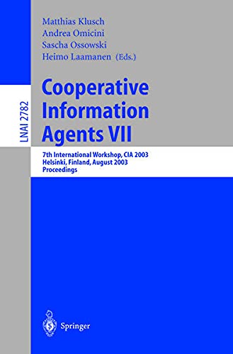 Cooperative Information Agents VII [electronic resource] : 7th International Workshop, CIA 2003, Helsinki, Finland, August 27-29, 2003. Proceedings / edited by Matthias Klusch, Andrea Omicini, Sascha Ossowski, Heimo Laamanen.