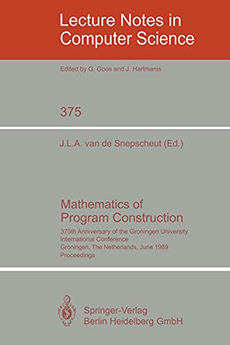 The papers included in this volume were presented at the Conference on Mathematics of Program Construction held from June 26 to 30, 1989. The conference was organized by the Department of Computing Science, Groningen University, The Netherlands, at the occasion of the University's 375th anniversary. The creative inspiration of the modern computer has led to the development of new mathematics, the mathematics of program construction. Initially concerned with the posterior verification of computer programs, the mathematics have now matured to the point where they are actively being used for the discovery of elegant solutions to new programming problems. Initially concerned specifically with imperative programming, the application of mathematical methodologies is now established as an essential part of all programming paradigms - functional, logic and object-oriented programming, modularity and type structure etc. Initially concerned with software only, the mathematics are also finding fruit in hardware design so that the traditional boundaries between the two disciplines have become blurred. The varieties of mathematics of program construction are wide-ranging. They include calculi for the specification of sequential and concurrent programs, program transformation and analysis methodologies, and formal inference systems for the construction and analysis of programs. The mathematics of specification, implementation and analysis have become indispensable tools for practical programming.