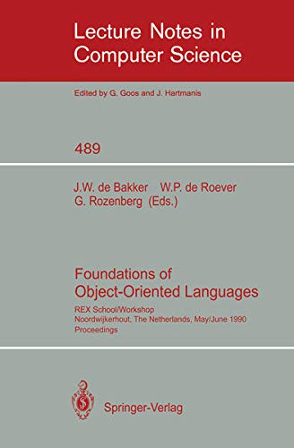 Over the last few years, object-oriented programming has been recognized as the best way currently available of structuring software systems. It emphasizes grouping together data and the operations performed on them, encapsulating the whole behind a clean interface, and organizing the resulting entities in a hierarchy based on specialization in functionality. In this way it provides excellent support for the construction of large systems. Up to now, there has been relatively little effort to develop formal theories of object-oriented programming. However, for the field to mature, a more formal understanding of the basic concepts of object-oriented programming is necessary. This volume presents the proceedings of the School/Workshop on Foundations of Object-Oriented Programming (FOOL) held in Noordwijkerhout, The Netherlands, May 28 - June 1, 1990. The workshop was an activity of the project REX (Research and Education in Concurrent Systems).