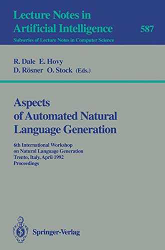 Aspects of Automated Natural Language Generation [electronic resource] : 6th International Workshop on Natural Language Generation Trente, Italy, April 5–7 1992 Proceedings / edited by R. Dale, E. Hovy, D. Rösner, O. Stock.