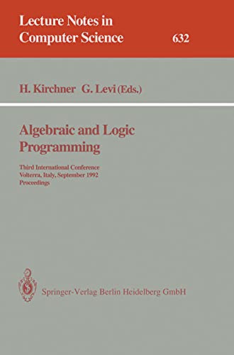 This volume contains the proceedings of the Third International Conference on Algebraic and Logic Programming, held in Pisa, Italy, September 2-4, 1992. Like the two previous conferences in Germany in 1988 and France in 1990, the third conference aims at strengthening the connections betweenalgebraic techniques and logic programming. On the one hand, logic programming has been very successful during the last decades and more and more systems compete in enhancing its expressive power. On the other hand, concepts like functions, equality theory, and modularity are particularly well handled in an algebraic framework. Common foundations of both approaches have recently been developed, and this conference is a forum for people from both areas to exchange ideas, results, and experiences. The book covers the following topics: semantics ofalgebraic and logic programming; integration of functional and logic programming; term rewriting, narrowing, and resolution; constraintlogic programming and theorem proving; concurrent features in algebraic and logic programming languages; and implementation issues.