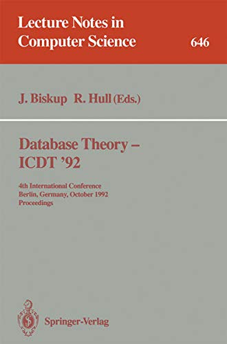 Database Theory — ICDT '92 [electronic resource] : 4th International Conference Berlin, Germany, October 14–16, 1992 Proceedings / edited by Joachim Biskup, Richard Hull.