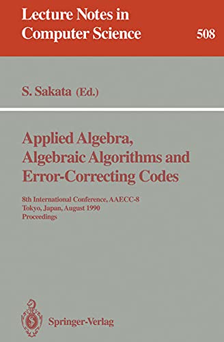 The AAECC conferences focus on the algebraic aspects of modern computer science, which include the most up-to-date and advanced topics. The topic of error-correcting codes is one where theory and implementation are unified into a subject both of mathematical beauty and of practical importance. Algebraic algorithms are not only interesting theoretically but also important in computer and communication engineering and many other fields. This volume contains the proceedings of the 8th AAECC conference, held in Tokyo in August 1990. Researchers from Europe, America, Japan and other regions of the world presented papers at the conference. The papers present new results of recent theoretical and application-oriented research on applied algebra, algebraic algorithms and error-correcting codes.