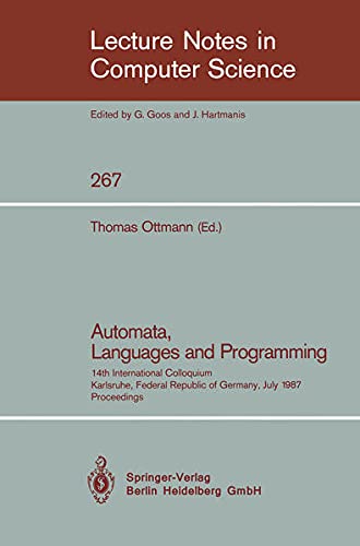 This volume contains the proceedings of the 14th International Colloquium on Automata Languages and Programming, organized by the European Association for Theoretical Computer Science (EATCS) and held in Karlsruhe, July 13-17, 1987. The papers report on original research in theoretical computer science and cover topics such as algorithms and data structures, automata and formal languages, computability and complexity theory, semantics of programming languages, program specification, transformation and verification, theory of data bases, logic programming, theory of logical design and layout, parallel and distributed computation, theory of concurrency, symbolic and algebraic computation, term rewriting systems, cryptography, and theory of robotics. The authors are young scientists and leading experts in these areas.