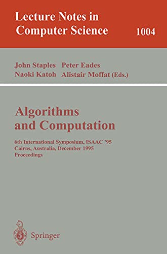 Algorithms and Computations [electronic resource] : 6th International Symposium, ISAAC '95 Cairns, Australia, December 4–6, 1995 Proceedings / edited by John Staples, Peter Eades, Naoki Katoh, Alistair Moffat.