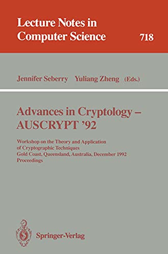 Advances in Cryptology — AUSCRYPT '92 [electronic resource] : Workshop on the Theory and Application of Cryptographic Techniques Gold Coast, Queensland, Australia, December 13–16, 1992 Proceedings / edited by Jennifer Seberry, Yuliang Zheng.