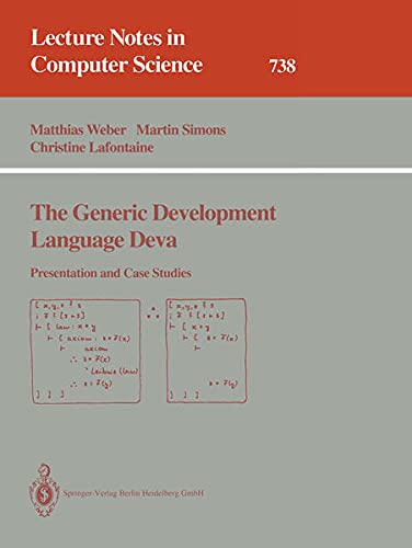 This book summarizes work done by the authors under the Esprit Tool Use project (1985-1990), at GMD in Karlsruhe and at Berlin University of Technology. It provides a comprehensive description of the generic development language Deva designed by the authors. Much of the research reported in this monograph is inspired by the work of Michel Sintzoff on formal program development; he contributed an enlightening Foreword. Deva is essentially a typed functional language with certain deduction rules. The difference with ordinary languages is, of course, the application domain: the types serve here to express propositions such as specifications or programs, rather than just data classes. Its practical applicability was tested on several non-trivial case studies. The whole book is written using the DVWEB system, a WEB for Deva, beeing implemented at the Berlin University of Technology.