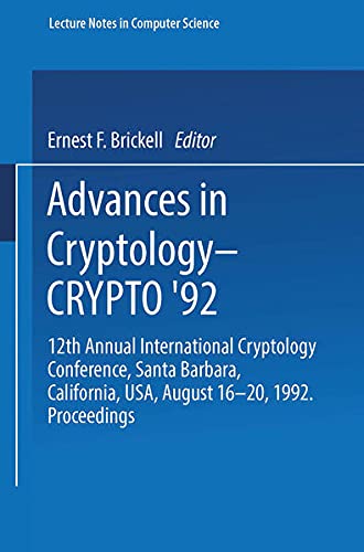 Advances in Cryptology — CRYPTO’ 92 [electronic resource] : 12th Annual International Cryptology Conference Santa Barbara, California, USA August 16–20, 1992 Proceedings / edited by Ernest F. Brickell.