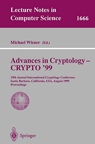 Advances in Cryptology — CRYPTO’ 99 [electronic resource] : 19th Annual International Cryptology Conference Santa Barbara, California, USA, August 15–19, 1999 Proceedings / edited by Michael Wiener.