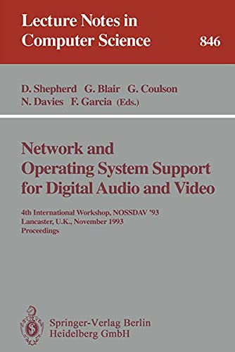 This book constitutes the thoroughly revised proceedings of the Fourth International Workshop on Network and Operating System Support for Digital Audio and Video (NOSSDAV '93), held in Lancaster, UK in November 1993. The 24 papers presented in the volume were carefully selected from more than 100 submissions. In addition, the book contains an introduction by the editors as well as a summary of the discussions that occurred during the workshop and a record of the panel and work-in-progress session. The book is organized into chapters on end system architecture, operating system support, high speed networking, quality of service, protocol issues, resource reservation in heterogeneous networks, and storage servers and multicast.
