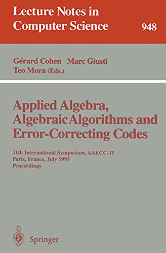 This book constitutes the proceedings of the 11th International Conference on Applied Algebra, Algebraic Algorithms and Error-Correcting Codes, AAECC-11, held in Paris, France in July 1995. The volume presents five invited papers and 32 full revised research papers selected from a total of 68 submissions; it is focussed on research directed to the exploitation of algebraic techniques and methodologies for the application in coding and computer algebra. Among the topics covered are coding, cryptoloy, communication, factorization of polynomials, Gröbner bases, computer algebra, algebraic algorithms, symbolic computation, algebraic manipulation.