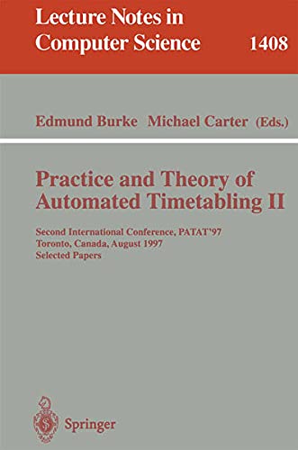 This book constitutes the thoroughly refereed post-workshop proceedings of the Second International Conference on the Practice and Theory of Automated Timetabling, PATAT'97, held in Toronto, Canada, in August 1997. The 17 revised full papers presented were carefully selected for presentation at the conference and then had to pass a second round of reviewing. The book is divided into topical sections on surveys, tabu search and simulated annealing, evolutionary computation (population-based methods), constraint-based methods, graph theory, and practical issues.
