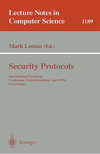 This book constitutes the refereed proceedings of the International Workshop on Security Protocols held in Cambridge, UK, in April 1996, in the context of the special program on computer security, cryptology, and coding theory at the Isaac Newton Institute. The 17 revised full papers and one abstract included in the book were carefully selected. Among the topics addressed are several types of public key cryptosystems, digital cash, electronic commerce, digital signatures, and visual cryptography. Besides original theoretical results, the collection of papers show a strong applications-oriented component.
