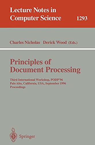This book constitutes the thoroughly refereed post-workshop proceedings of the Third International Workshop on Principles of Document Processing, PODP'96, held in Palo Alto, California, USA, in September 1996. The book contains 13 revised full papers presented as chapters of a coherent, monograph-like book. The papers focus equally on the theory and the practice of document processing. Among the topics covered are theory of media, cross media publishing and multi-modal documents, SGML content models, grammar-compatible stylesheets, multimedia documents, temporal constraints in multimedia, hypertext representation, contextual knowledge, structured documents for IR, Web-publishing, virtual documents, etc.
