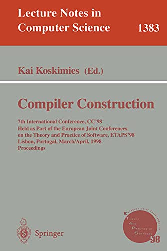 This book constitutes the refereed proceedings of the 7th International Conference on Compiler Construction, CC '98, held as part of the European Joint Conference on the Theory and Practice of Software, ETAPS '98, in Lisbon, Portugal, in March/April 1998. The volume presents 19 revised full papers selected from a total of 50 submissions; also four system demonstrations and an abstract of an invited talk are included. The papers cover the classical issues of compiler construction centered around computer languages and their processors, with an emphasis on practical methods and tools, but also other aspects of language processing are addressed like interpretation, editing, and debugging.
