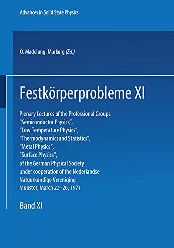 Festkörperprobleme 11 [electronic resource] : Plenary Lectures of the Professional Groups “Semiconductor Physics”, “Low Temperature Physics”, “Thermodynamics and Statistics”, “Metal Physics”, “Surface Physics”, of the German Physical Society under cooperation of the Nederlandse Natuurkundige Vereniging Münster, March 22–26, 1971 / herausgegeben von O. Madelung.