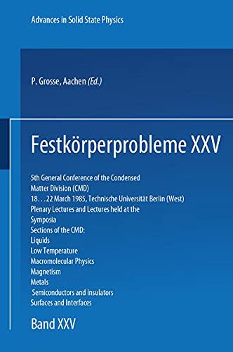 Festkörperprobleme 25 [electronic resource] : 5th General Conference of the Condensed Matter Division (CMD) 18…22 March 1985, Technische Universität Berlin (West) Plenary Lectures and Lectures held at the Symposia Sections of the CMD: Liquids Low Temperature Macromolecular Physics Magnetism Metals Semiconductors and Insulators Surfaces and Interfaces / herausgegeben von P. Grosse.