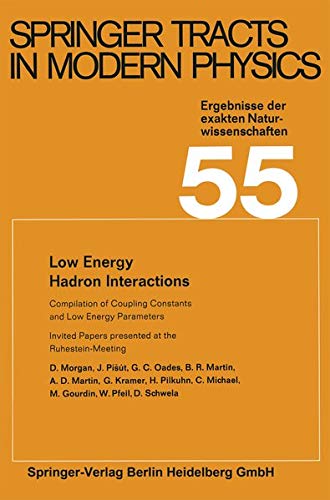 Low energy pion-pion scattering -- Analytic extrapolations and the determination of pion-pion phase shifts -- Coulomb corrections in the analysis of ?N experimental scattering data -- Kaon-nucleon interactions below 1 GeV/c -- The ?KN coupling and extrapolation below the ¯KN threshold -- Nucleon-nucleon interactions below 1 GeV/c -- Coupling constants from PCAC -- Regge residues -- Vector mesons in electromagnetic interactions -- Coupling parameters of pseudoscalar meson photoproduction on nucleons -- Compilation of coupling constants and low-energy parameters.